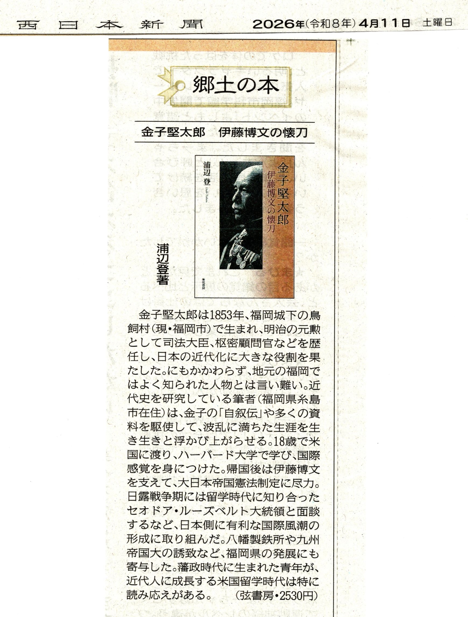 - 書評掲載『広瀬淡窓』深町浩一郎著、西日本新聞社、平成14年