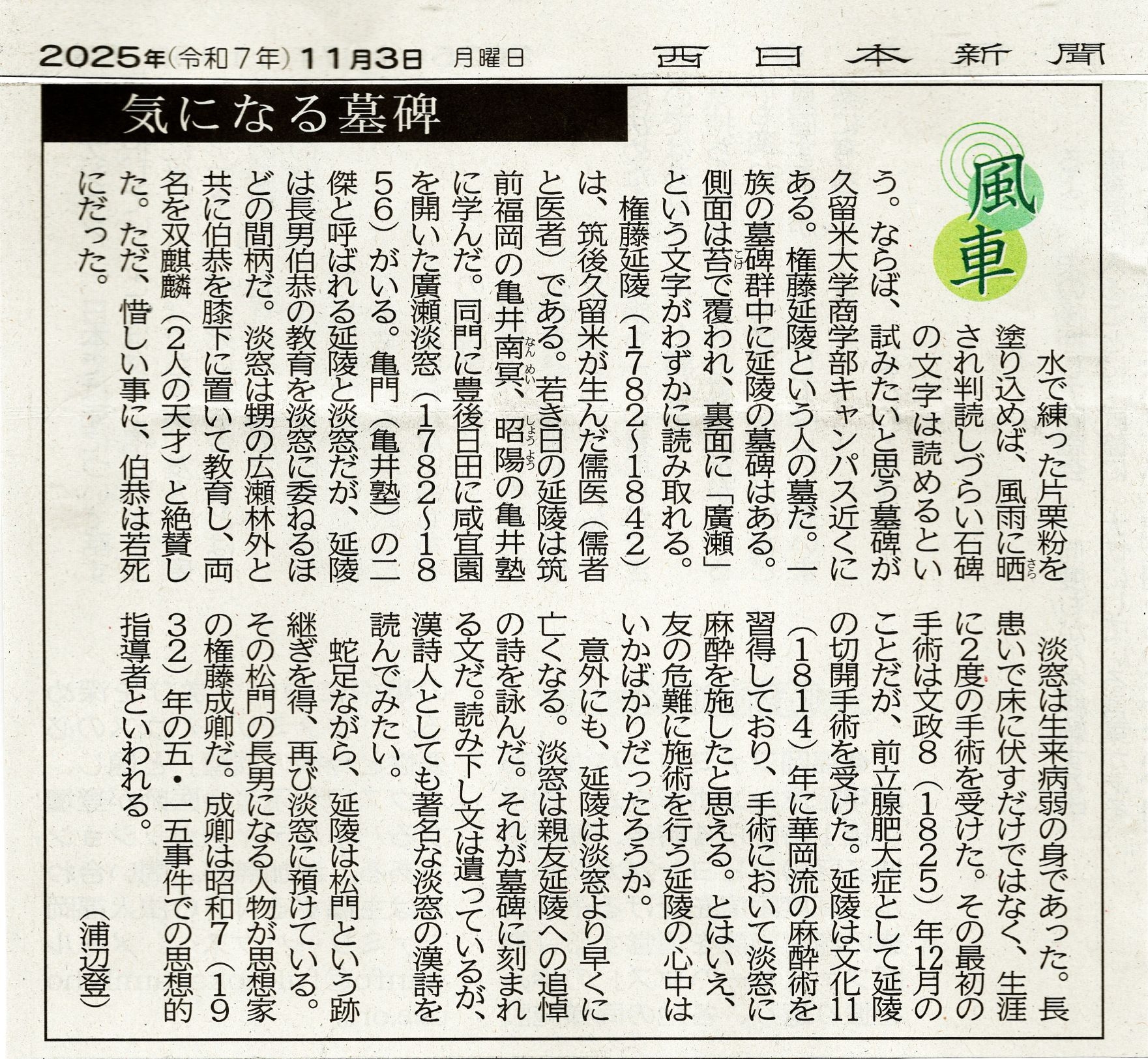 2024年6月6日西日本新聞朝刊「風車」欄に寄稿文が掲載されました